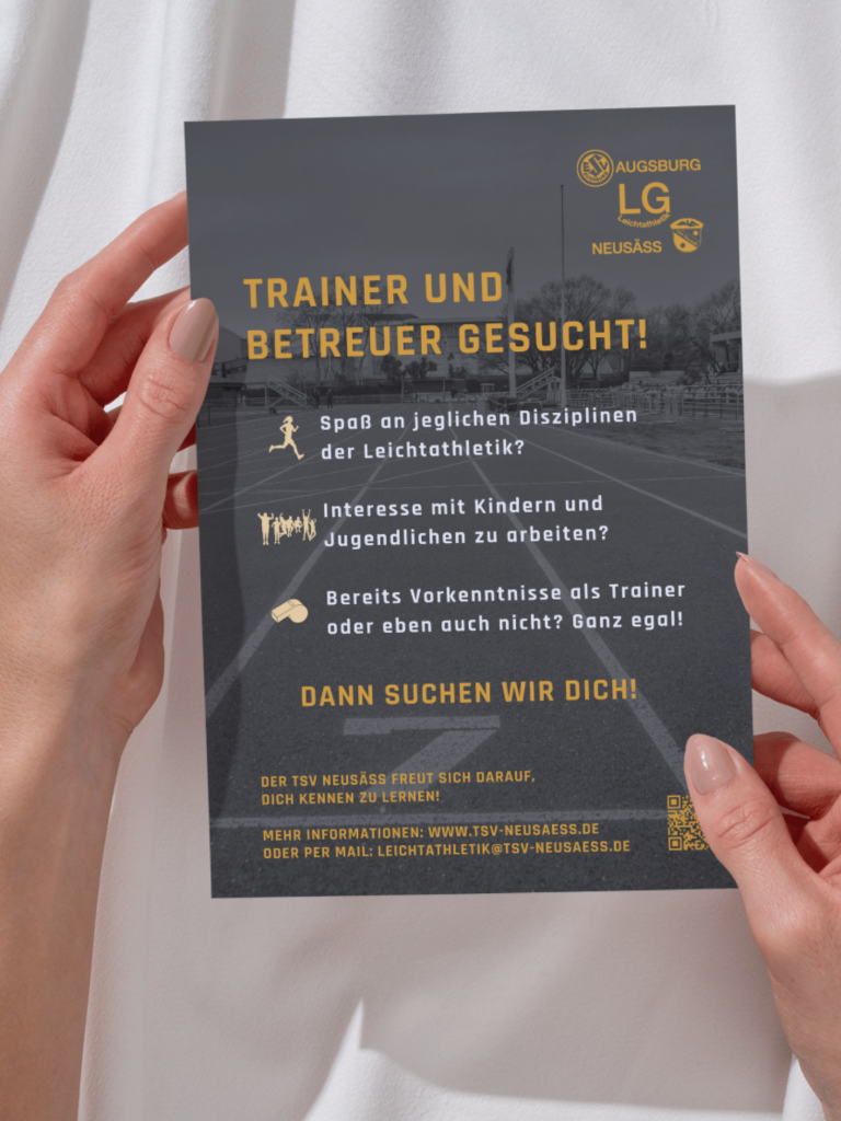 Daher durften wir bei der Suche nach neuen Leichtathletentrainern grafisch unterstützen und hierfür Flyer und Plakate entwerfen.